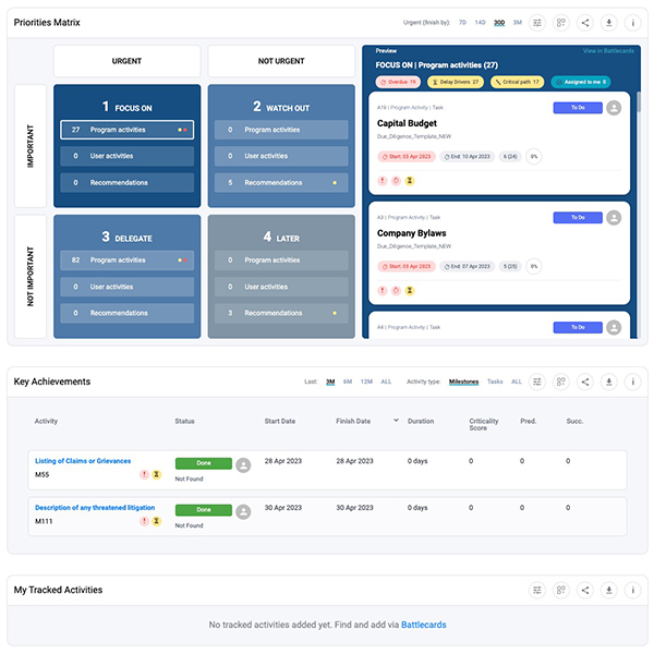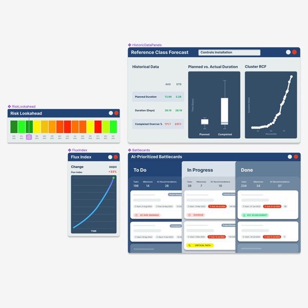As a consultant design director for this construction-sector startup I designed a suite of dashboards to draw users' attention to key moments in a project's schedule.