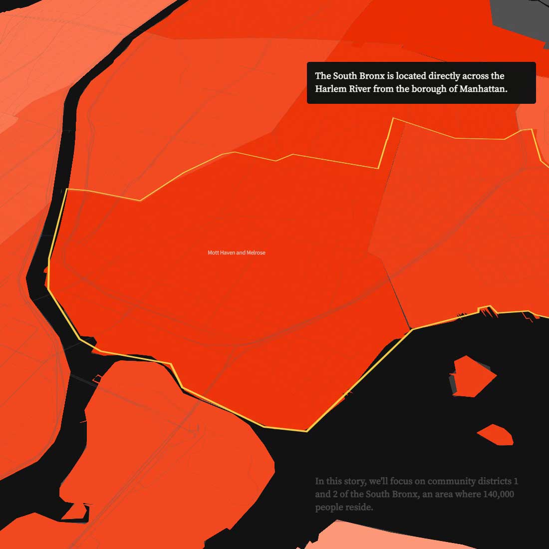 I built this responsive scrollytelling map to contextual local issues. Combining on-the-ground reporting, charts, and heatmaps, this complicated story is told with a simple downward swipe.